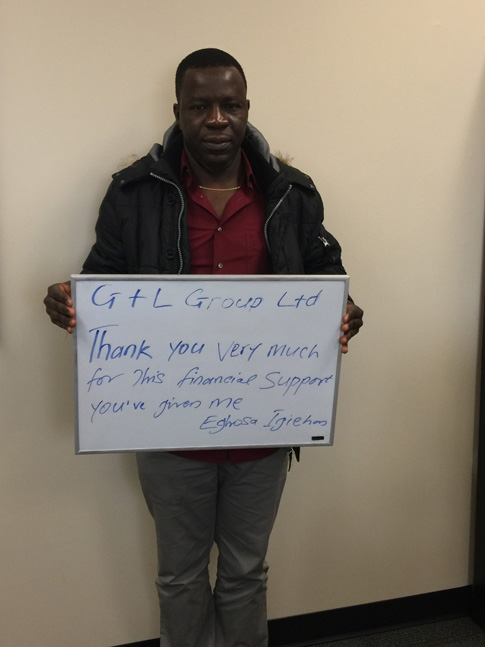 The first of two $2,500 awards was presented to Eghosa Igiehon in November 2016. Eghosa’s interest in construction began in Nigeria where he delivered building materials to construction sites. After arriving in Canada, Eghosa joined the carpenter union (Local 27) and later decided to go attend College – a first in his family.